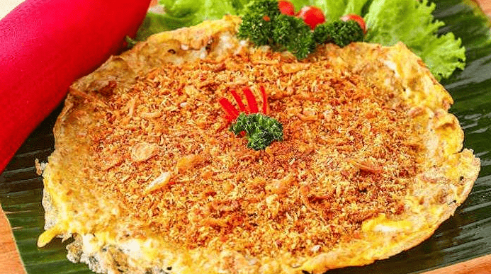 Ya, untuk membuatnya, Anda perlu memasak telur yang sudah dicampur dengan beras ketan putih dan dihadapkan langsung pada panas arang atau tungku hingga menempel di dasar wajan menyerupai kerak. Tampilannya sedikit hangus, tetapi memang begitu seharusnya.